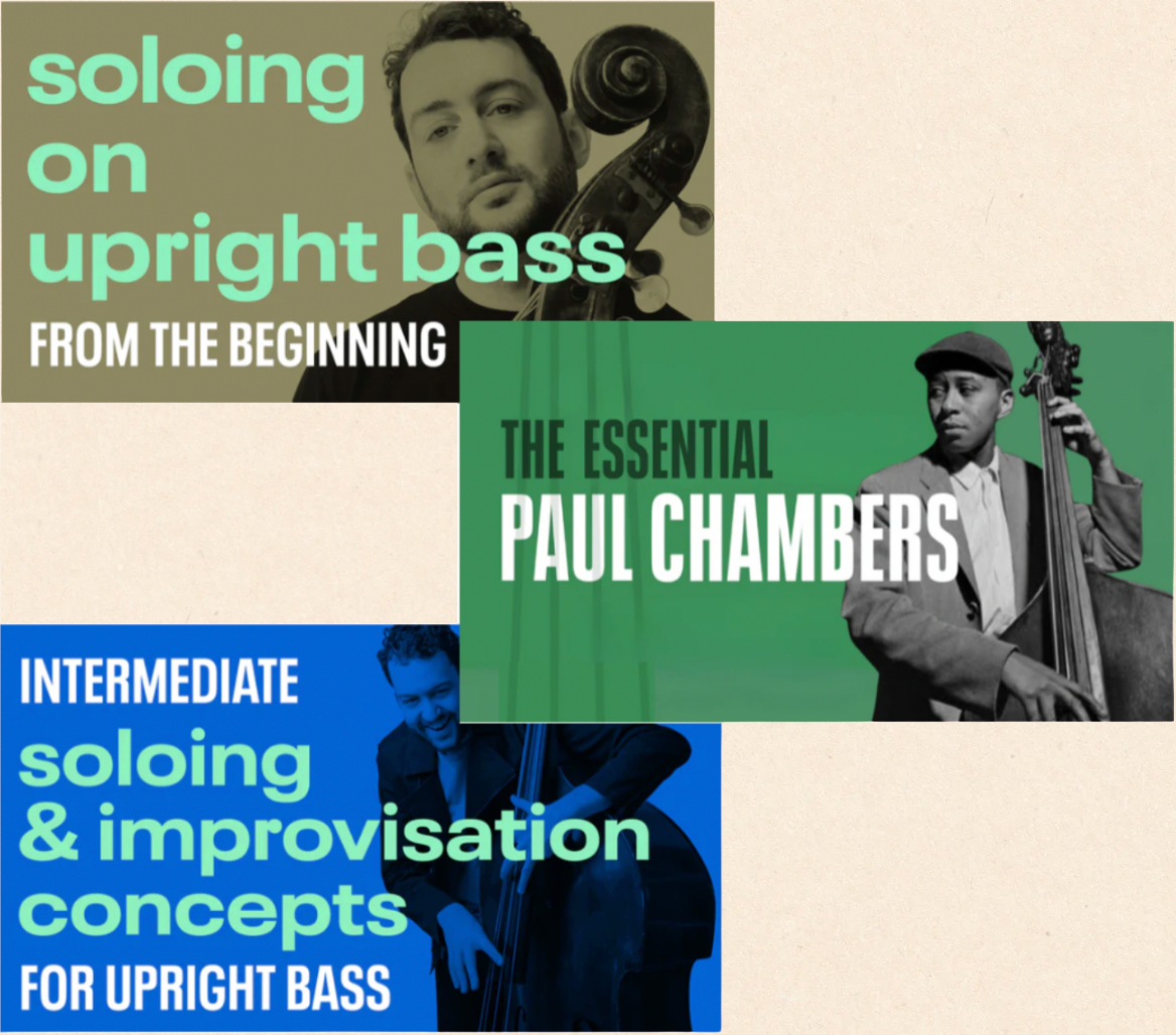 This bundle contains 3 soloing courses: "Soloing on Upright Bass: From The Beginning," "The Essential Paul Chambers," and "Intermediate Soloing and Improvisation Concepts."